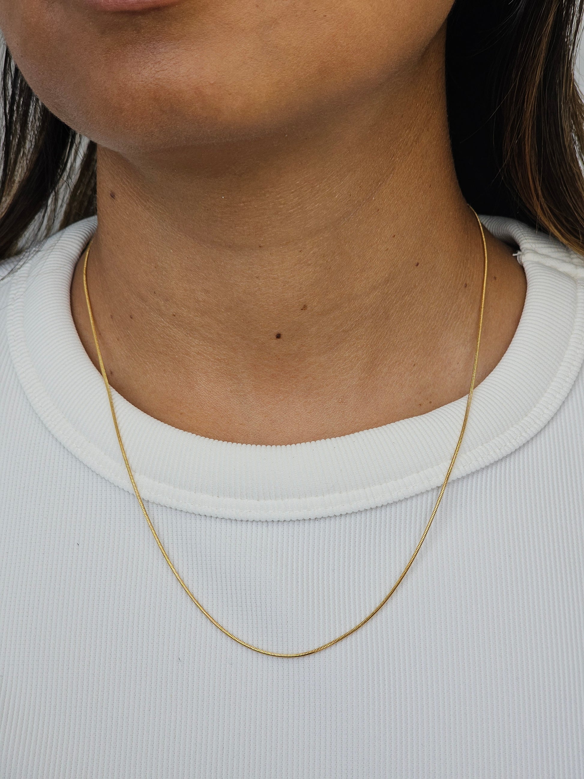 Una pieza sutil y ligera, perfecta para quienes prefieren un look fino y elegante. Ideal para acompañar dijes pequeños o lucir sola con discreción.